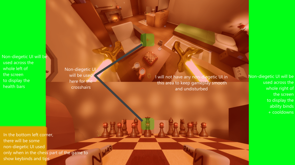 My intention for my final major project was to create an FPS game which follows a game of chess. I wanted to create a local multiplayer shooter game with fun mechanics, such as different abilities and weapons, which stand apart from traditional shooter games. I wanted to make this game to be very mechanic-driven to push myself into learning new skills and improving my problem-solving while programming in Unreal Engine.