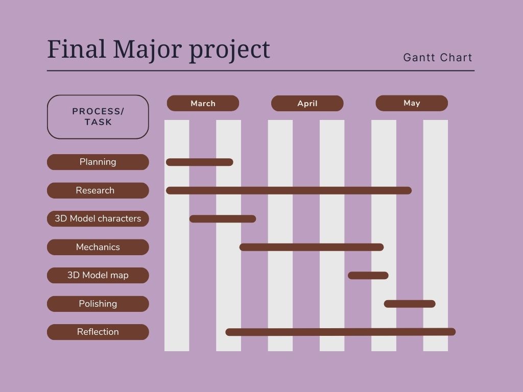 To assist with my time management, I have decided to create a Gantt chart so that I can keep an idea of what I should be working on and how long it should take me.