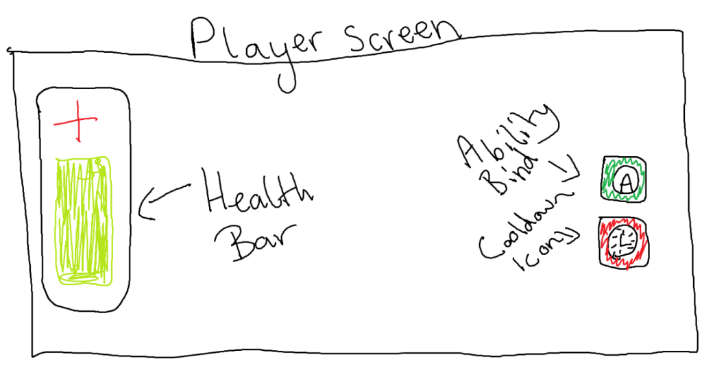 This is a quick sketch I drew for the map in my game, I drew it to be relatively simple while still having some obstacles to keep gameplay interesting. I also intentionally kept to very simple shaped because I want it to look stylized and low-poly to fit the general mood I have already created with my characters and UI design. Having low-poly assets will also make my game less laggy which is a bonus.