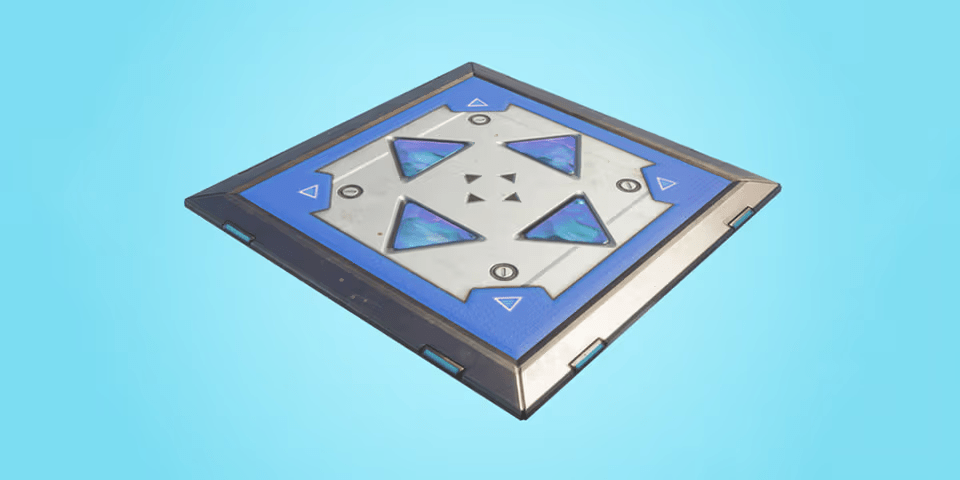 The first idea I had was a jump booster pad which just launches the player up when stood on then respawns after a few seconds. There is a similar item to this in Fortnite – the bounce pad which is the image to the right.