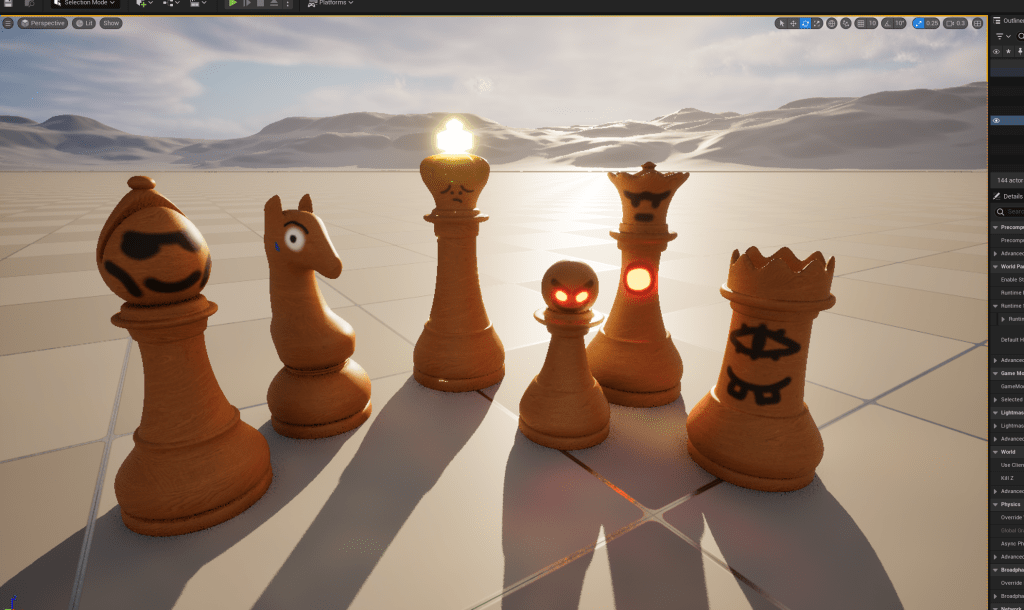 This week, I have worked on creating chess pieces for my game. I modelled them, textured them, and put them into unreal and made it so I can walk and look around as a chess piece.