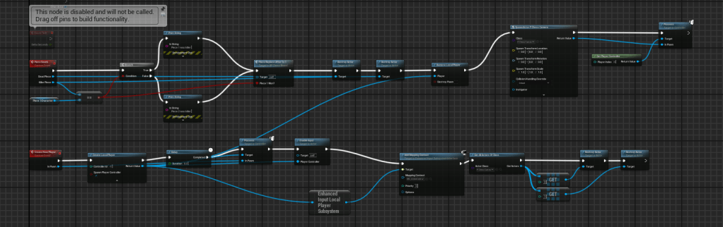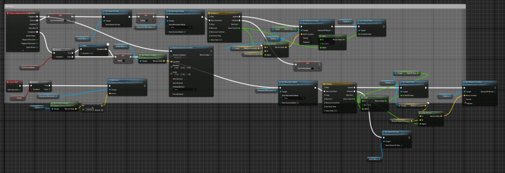 This is the code for my Bishop’s ability. The timeline nodes are used to smoothly move the camera’s location to a third person perspective.