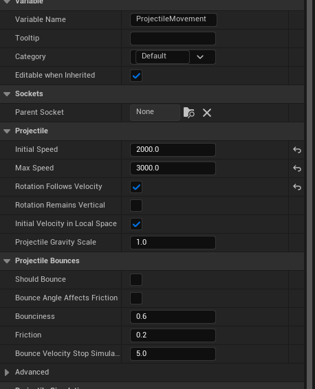 The projectile component was very easy to work with. All I had to do was add it onto an actor and edit the variables to how I wanted them to be.